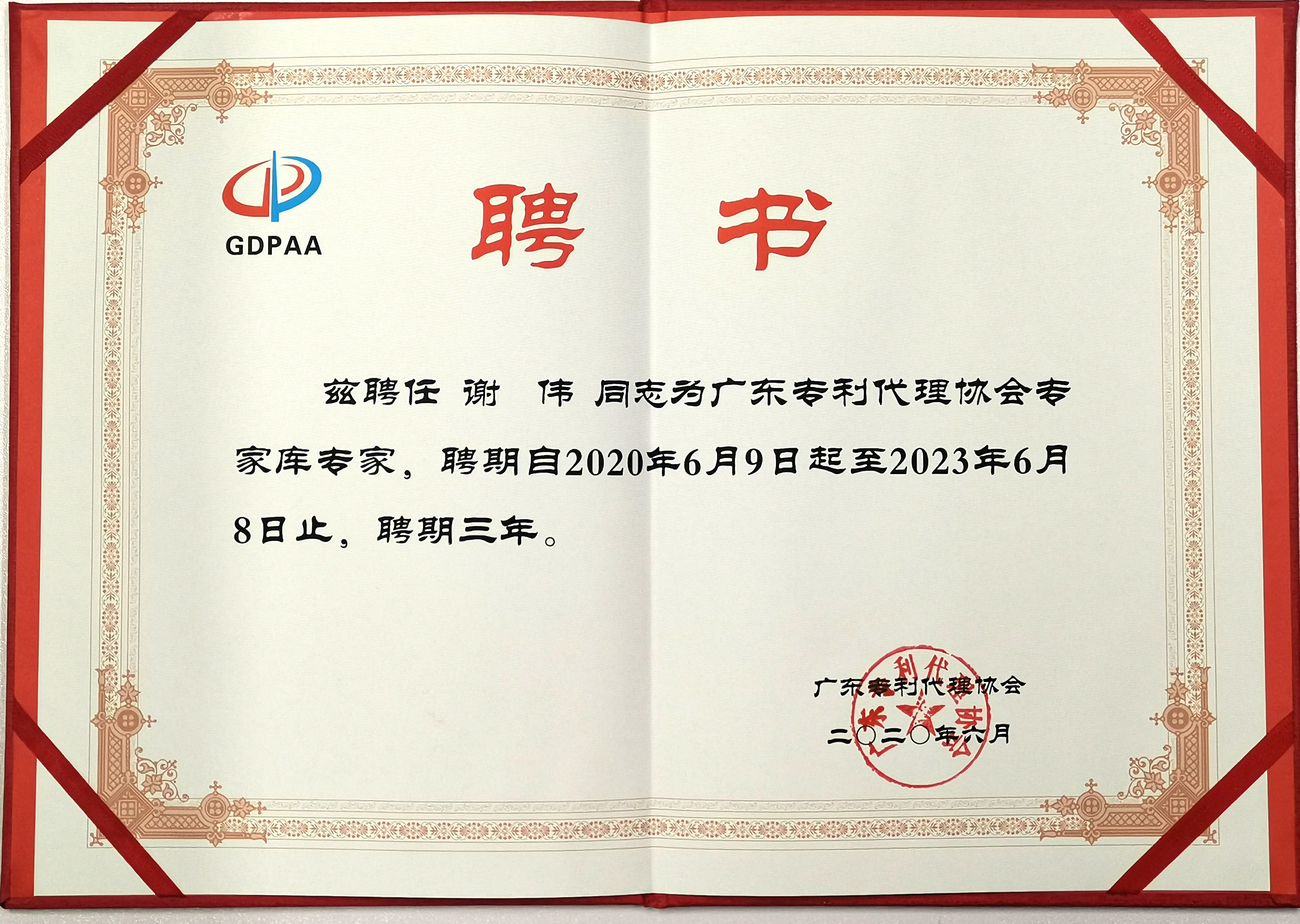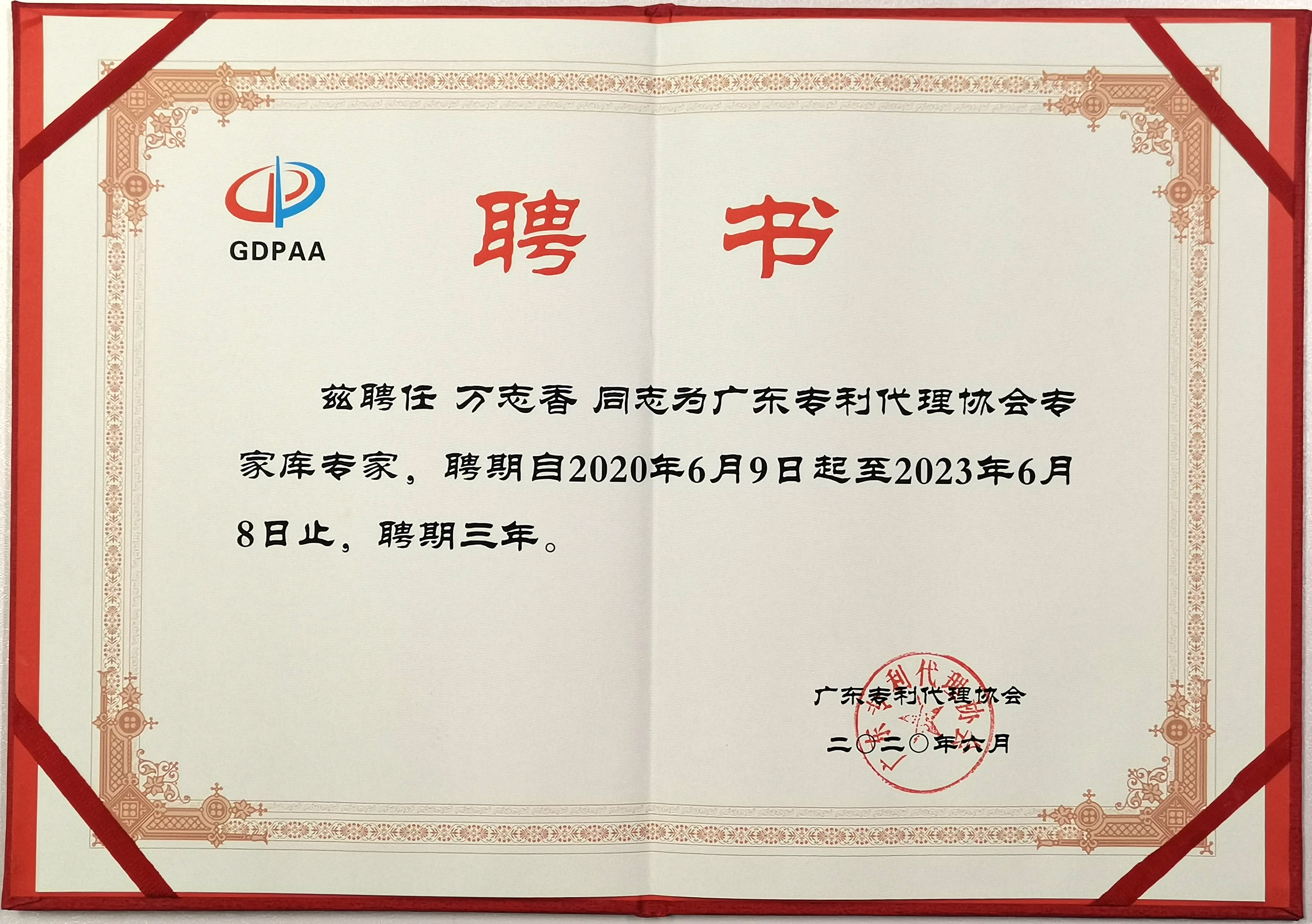 经公开征集、资格审核,广典知识产权代理事务所万志香、谢伟同时获聘广东专利代理协会专利专家库专家。