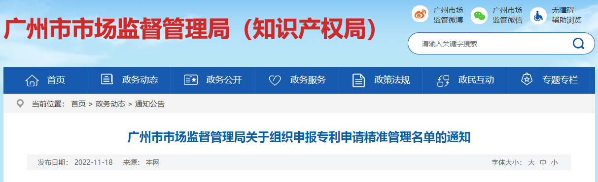 广州市市场监督管理局关于组织申报专利申请精准管理名单的通知